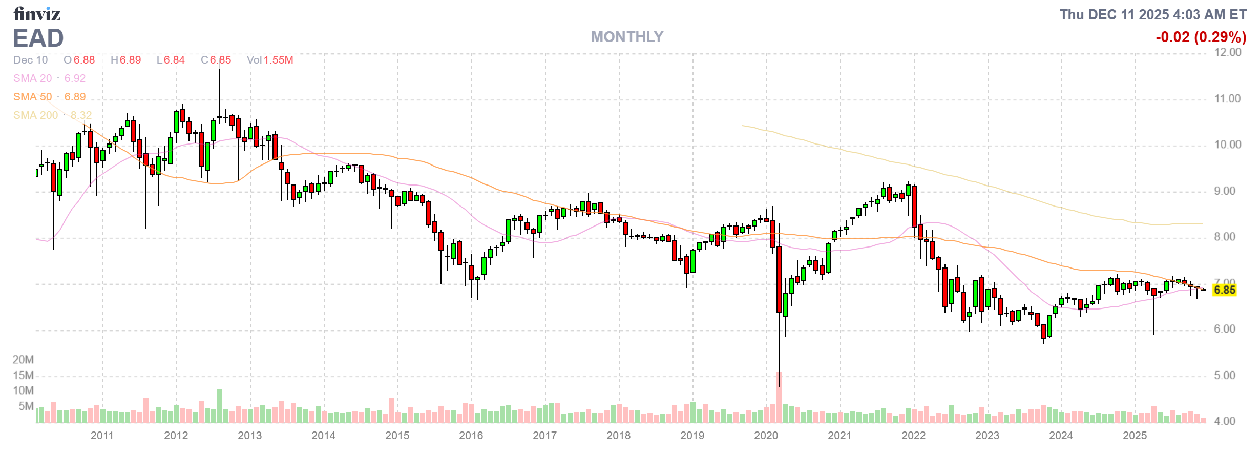 - Market Price: $6.85 (down 0.22% from prior close; 52-week range: $5.89–$7.18)
